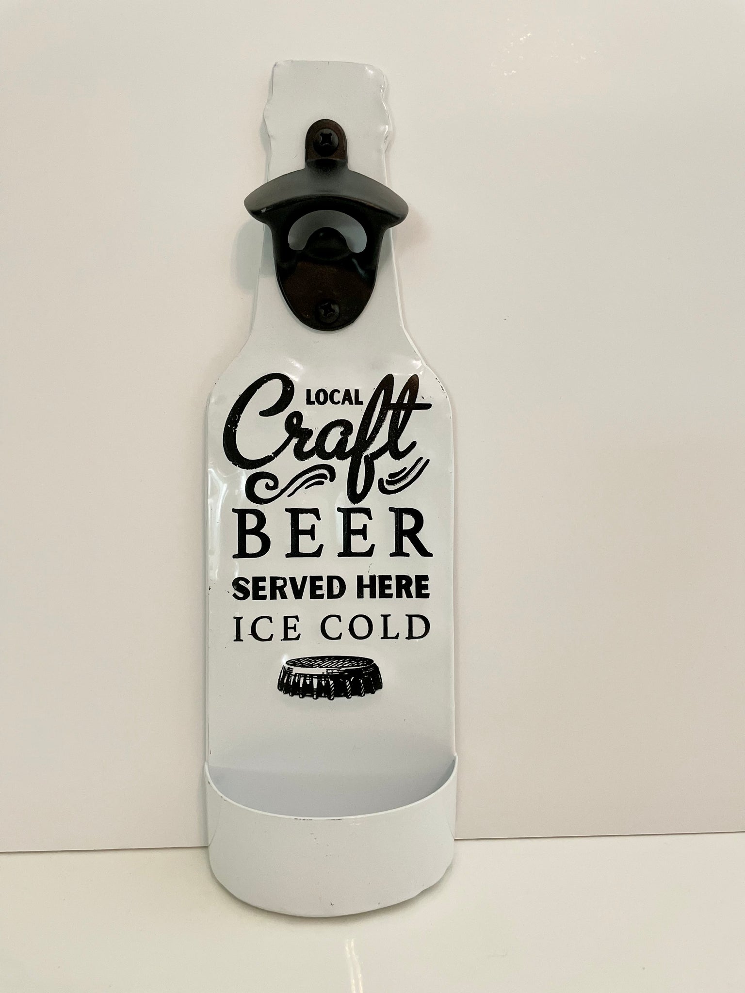 Retro style black and white bottle opener.